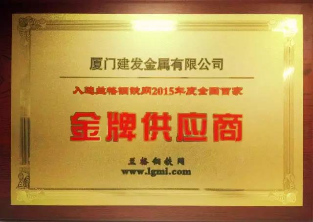 在蘭格鋼鐵網(wǎng)的主持下,經(jīng)過數(shù)輪謹(jǐn)慎、公正評選,"蘭格鋼鐵網(wǎng)金牌供應(yīng)商TOP100"評選結(jié)果終于塵埃落定。建發(fā)金屬公司憑借專業(yè)服務(wù)、守信經(jīng)營,獲評蘭格金牌供應(yīng)商TOP100,并受頒牌匾和證書,這已是建發(fā)金屬公司連續(xù)第二次入選該榜單。此次入選的企業(yè)都是具有一定規(guī)模和實力,供應(yīng)正品材,價格實惠,準(zhǔn)斤足量、服務(wù)到位的企業(yè),具備較高的行業(yè)權(quán)威性和認可度。
