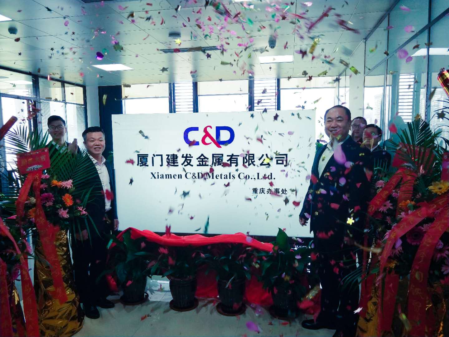 2018年4月18日,廈門建發(fā)金屬有限公司重慶辦事處正式揭牌成立。建發(fā)金屬總經(jīng)理張清華, 副總經(jīng)理堯偉鯤、孫龍, 總經(jīng)理助理吳輝明出席了本次開業(yè)典禮。