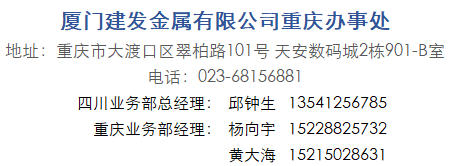 重慶是中西部集水、陸、空綜合交通樞紐為一體的特大型城市,擁有汽車、裝備制造等眾多千億級集群產(chǎn)業(yè)。此次重慶辦事處的成立,是建發(fā)金屬布局全國的第24家經(jīng)營網(wǎng)點,標(biāo)志著建發(fā)金屬向扎根大西南、服務(wù)大西南戰(zhàn)略布局更進(jìn)了一步。
