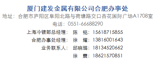 為充分發(fā)揮合肥辦事處的作用,建發(fā)金屬總經(jīng)理張清華,副總經(jīng)理伏廣州、孫龍,總經(jīng)理助理吳輝明,上海冷鍍部總經(jīng)理陳銘等近日前往合肥調(diào)研。