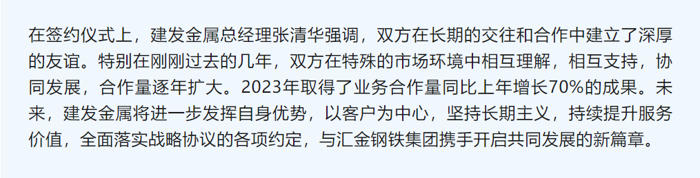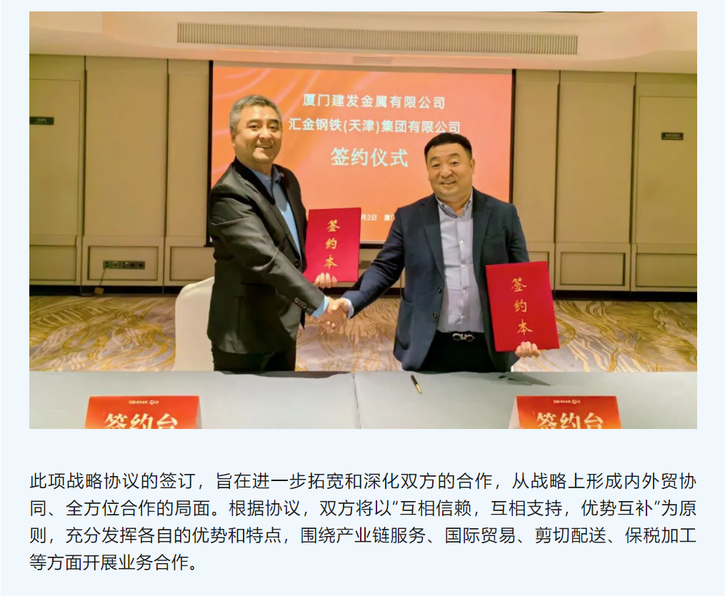 內(nèi)外貿(mào)協(xié)同,全方位合作| 建發(fā)金屬與匯金鋼鐵集團簽訂戰(zhàn)略合作協(xié)議
